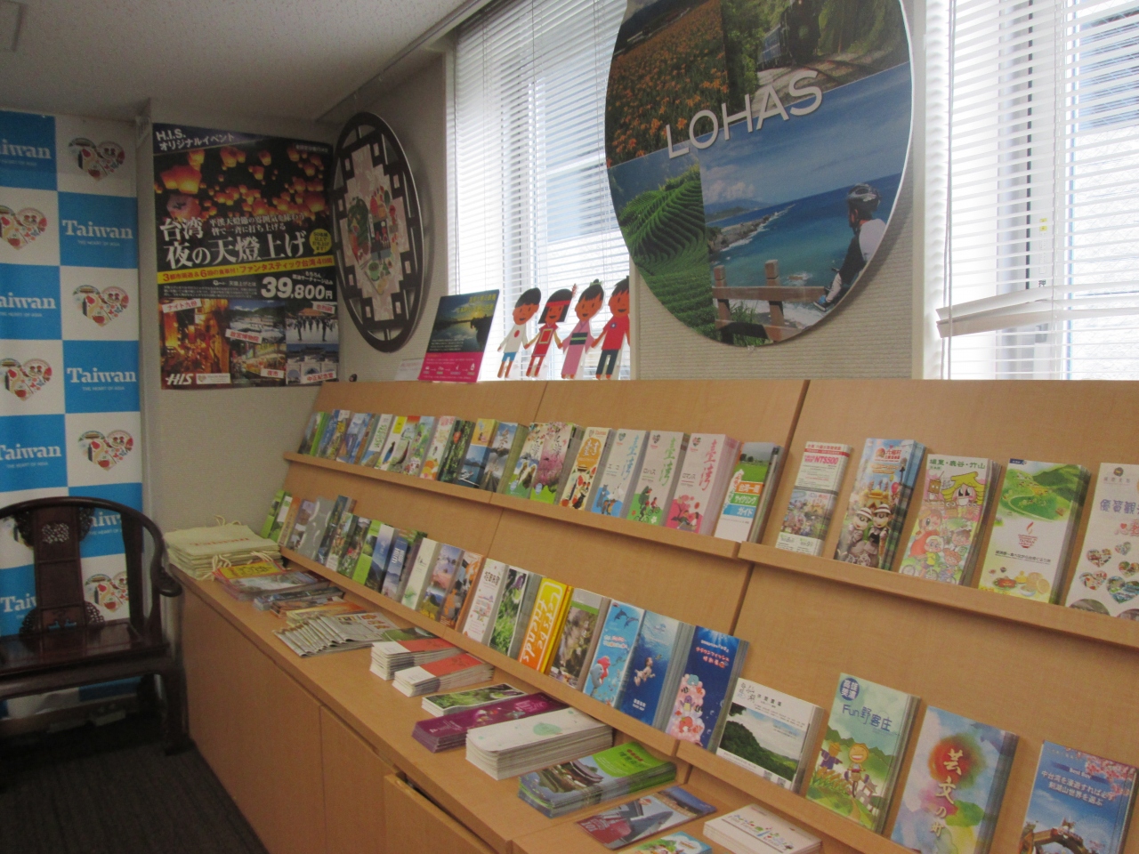 台湾観光協会の事務所として台湾内の観光地パンフレットが多く置いてあります、スタッフが何人もいますので直接質問ができます、台湾に行く前に関心のあること、わからないこと聞くと良いです、日本語の観光月刊誌や新聞があるのでもらってきました、所内にテーブル・イスがありますので資料などで調べることが出来ます。