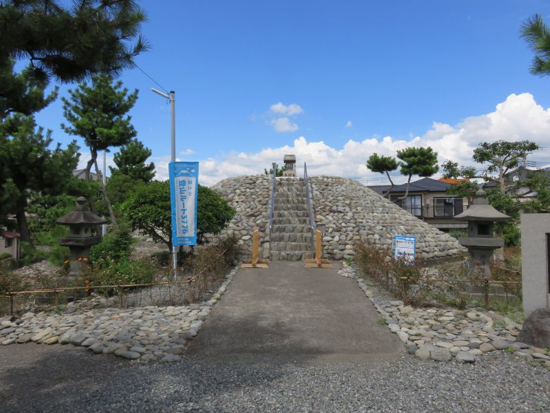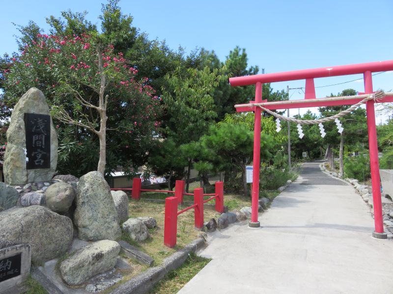その昔、富士塚を起点として富士山に登ったと伝えられていることにちなみ、富士塚の入口に富士山ガイドマップとスタンプラリー用の台紙とスタンプが置かれています。