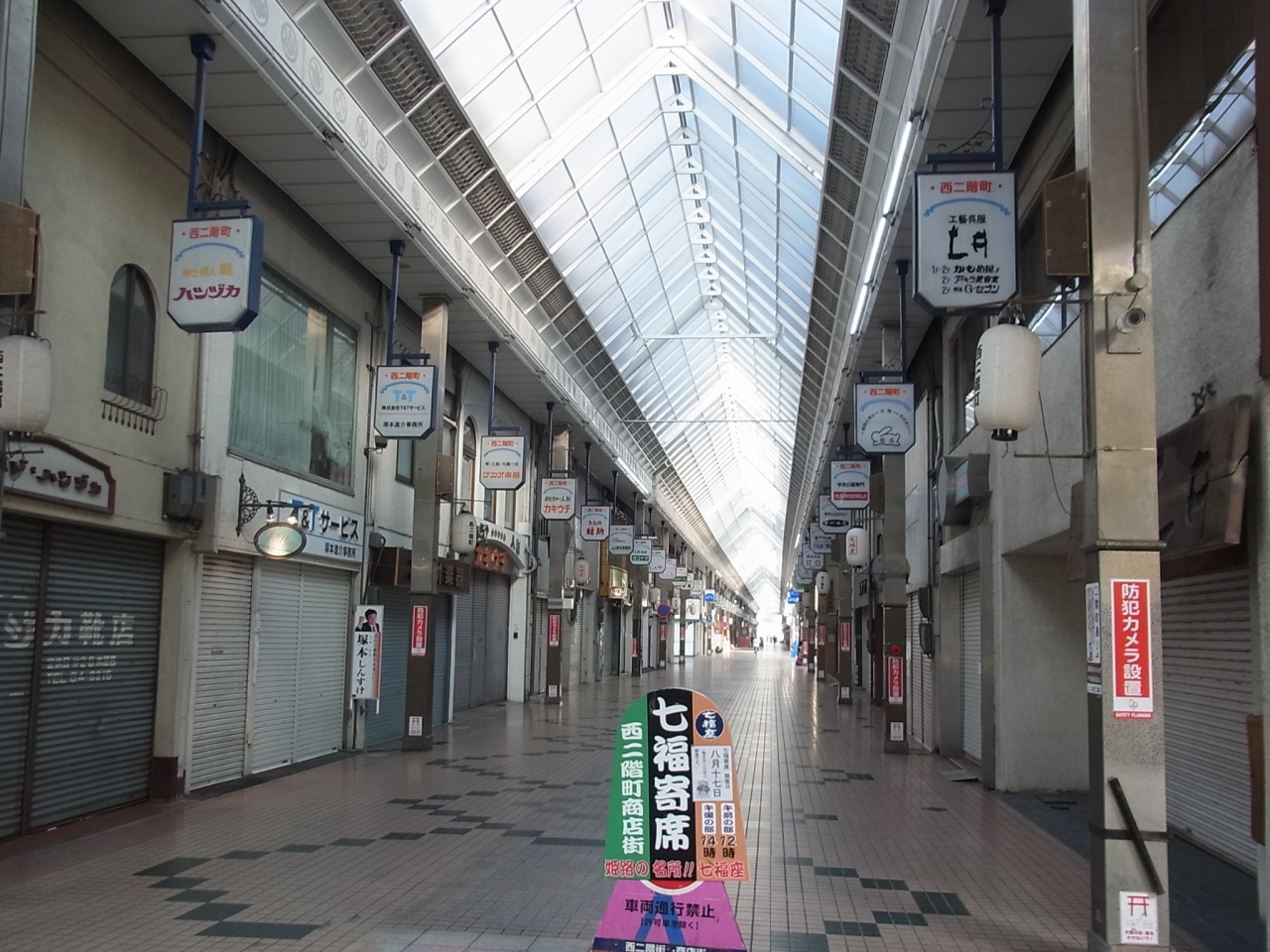 JR姫路駅の北口から徒歩5分くらいでしょうか。大手前通りを中心に姫路城に向かい左手へ横目に延びているアーケード付の大きな商店街です。お菊神社や長壁神社へ行ったあとに、たまたま通りかかりましたが、姫路周辺には他にも幾つかの大きな商店街があるようですね。
