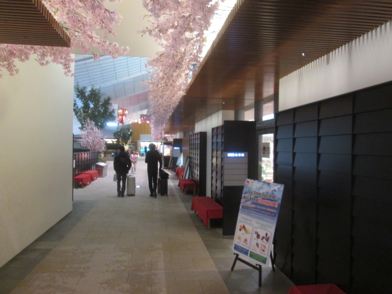 3月、国際線ターミナルのEdo食賓館に訪問すると桜の飾りが付けられていました。夜遅いフライトを利用する場合、閉店していることはありますが、閉店間際に入り、お土産を買うことができました。2016年の春は多忙で都内の桜を見る機会がありませんでしたが、Edo食賓館で花見を楽しみました。