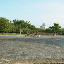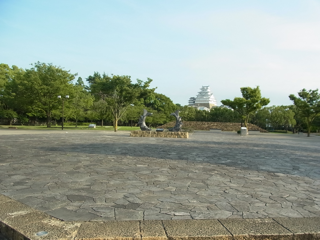 JR姫路駅から徒歩10~15分くらいでしょうか。大手前中央公園の向かいにある公園です。名前のとおり公園内中央に台のような土台があり、そこからは少し小さいですが見事な姫路城を見ることができます。公園内には他にも鯱のモニュメントもありました。ただ夏の日中は日陰もないので、ほとんど人はいませんでした。