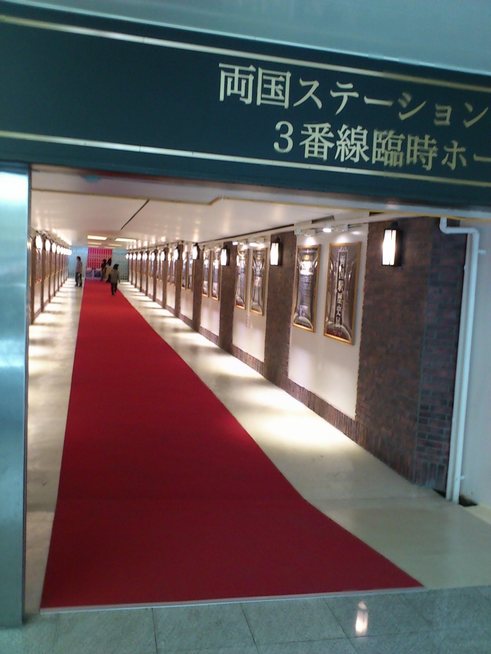 両国駅の改札の中にあります。以前は反対側のホームに行くために使われていた連絡通路が、ギャラリーになっていました。両国駅に着いた時は、ホームから階段を降りて改札に向かって一目散だったので気がつきませんでした。帰りに改札に来るとわかりました。両国駅歴史展を展示していて、両国駅の歴史がよくわかりました。