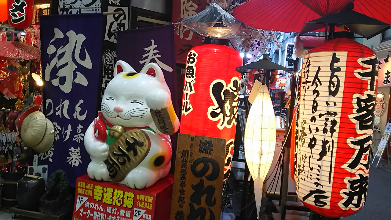 なんばCITY近くからなんばグランド花月までの南北の細い通り沿いにあり、食器・包丁・厨房設備から食品サンプルまで飲食店にまつわる各種”道具”を販売するお店がぎっしり並んでいます。いろいろ見て回るだけで結構楽しめるだけあって外国人の方も多かったです。