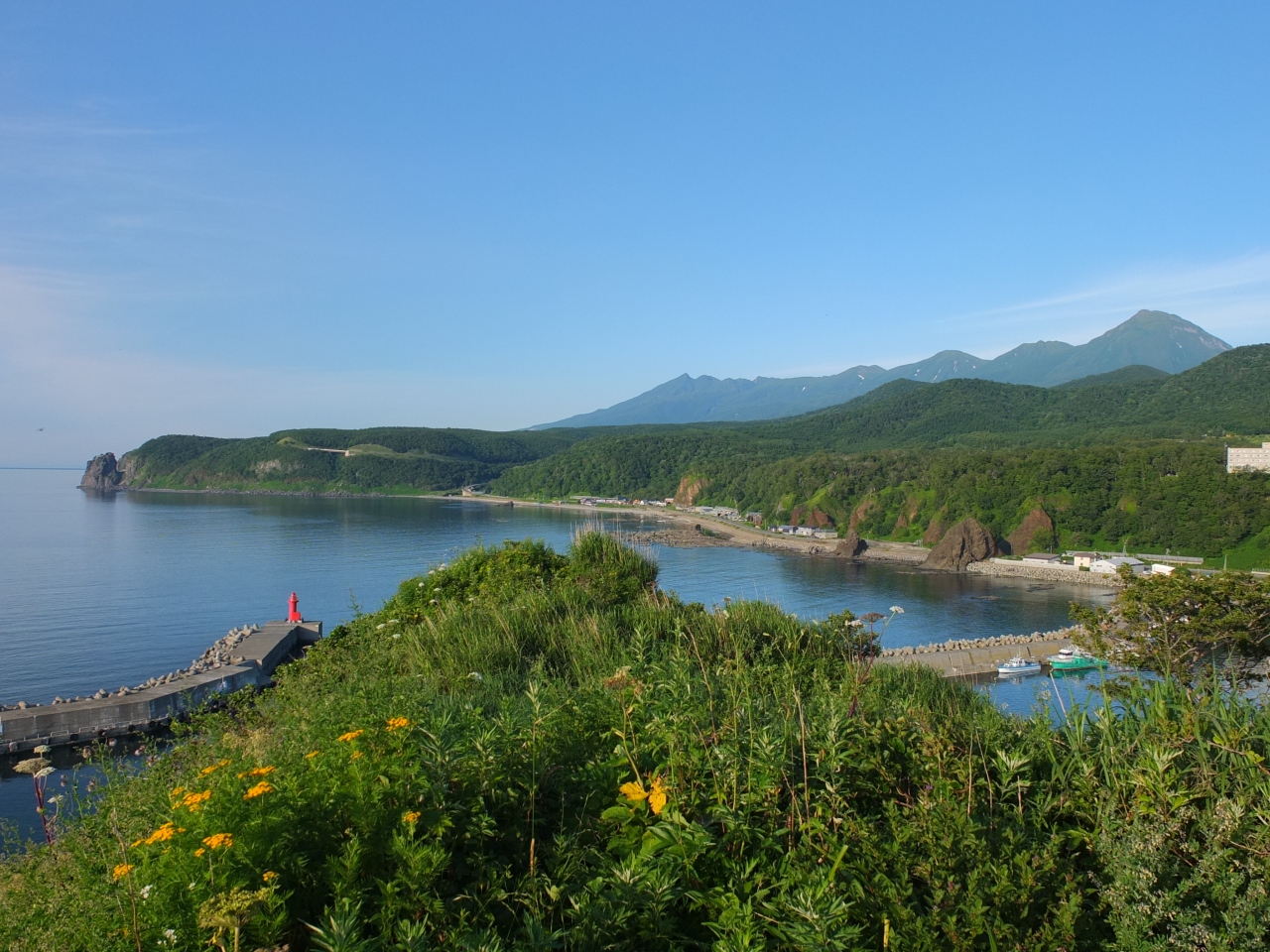 ウトロのフェリー乗り場のすぐ近くに、こんもりとした丘があり、それがオロンコ岩です。狭くて急な階段を上るようになっていますが、頂上までおよそ200段ありました。頂上は、散策路のようになっていて、ウトロの街や港、知床半島の眺めがみごとでした。