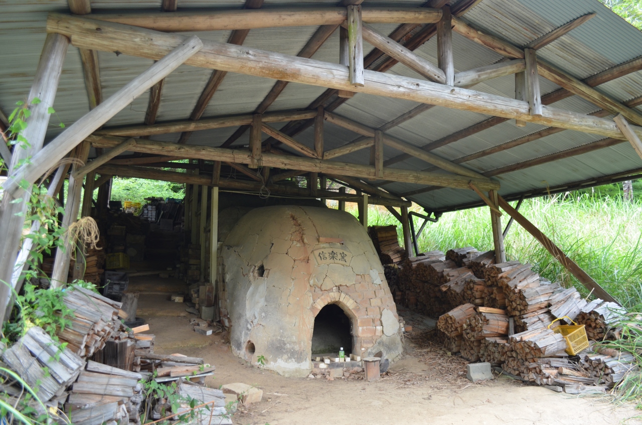 広い駐車場が有り、たぬきの広場には大小さまざまなたぬきが出迎えてくれる。中でも玄関先に鎮座しているのが自称日本一大きなたぬきといわれている。土産売り場と併設して食堂もある。店の裏側を少し進んで山手に入ると、信楽焼きの登り窯をみることができる。