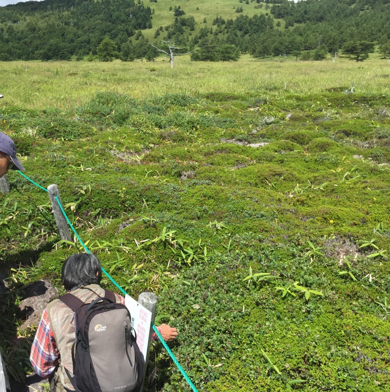 もともとは火山の噴火校でカルデラ湖でした。しかし一部の山が崩れ、水が流れたために湿原となりました。現在は様々な高山植物、昆虫や動物などが生息しています。ランプの宿の高峰温泉のガイドツアーに参加して、概ね3時間をかけて散策しました。