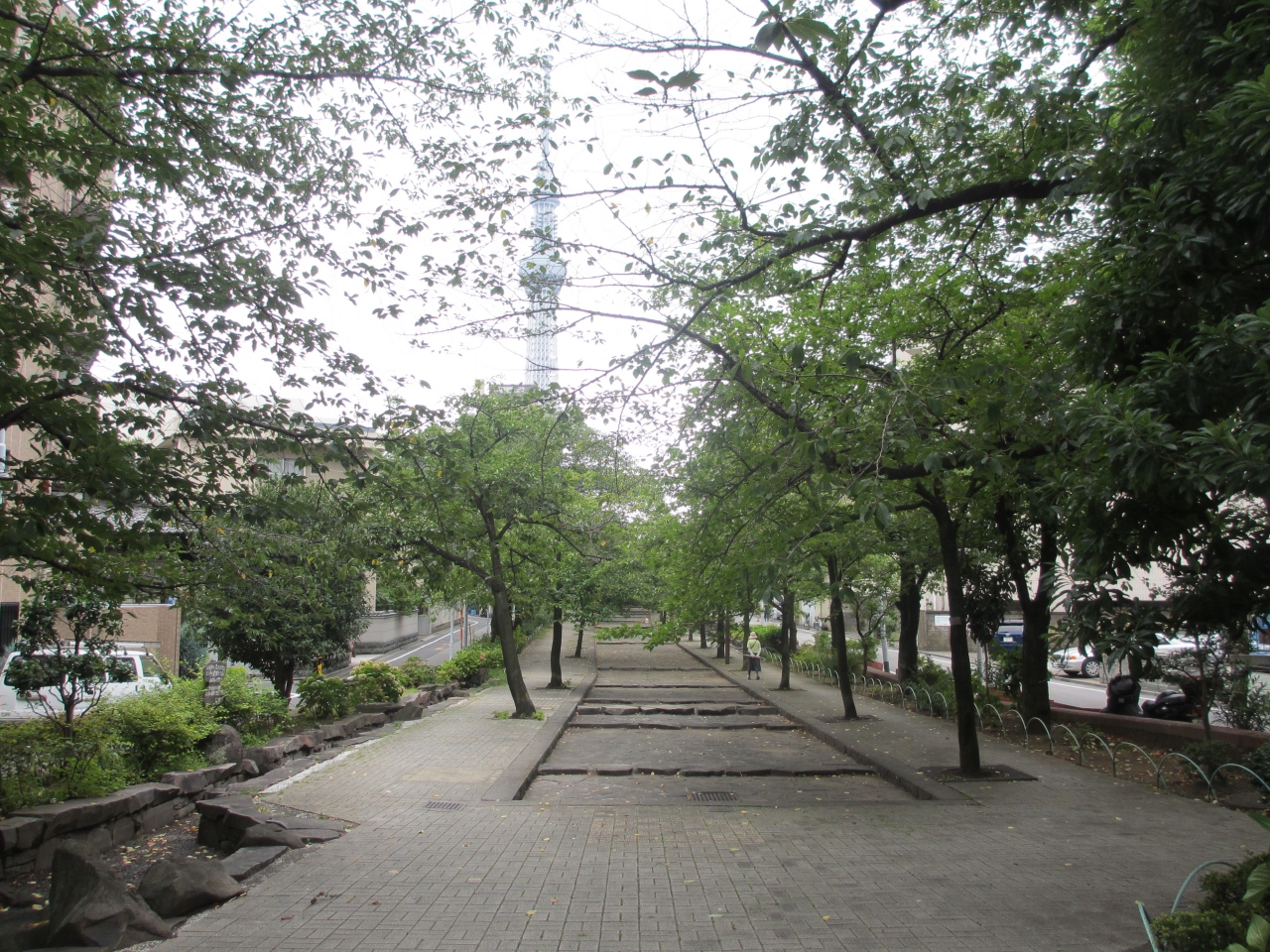 江戸時代に灌漑のために造られた山谷堀を昭和51~61年にかけて暗渠化して公園にしました。桜が植えられている細長い公園です。ベンチがあり休んでいる人がいました。紙洗橋から待乳山聖天のそばにある今戸橋まで歩きました。公園内に橋の名残が残っていて川があったことが分かります。暑い日だったので木々に囲まれた公園は日差しを避けるのに気持ちよかったです。隅田川に向かって少しずつ下っていく高低差は面白かったです。