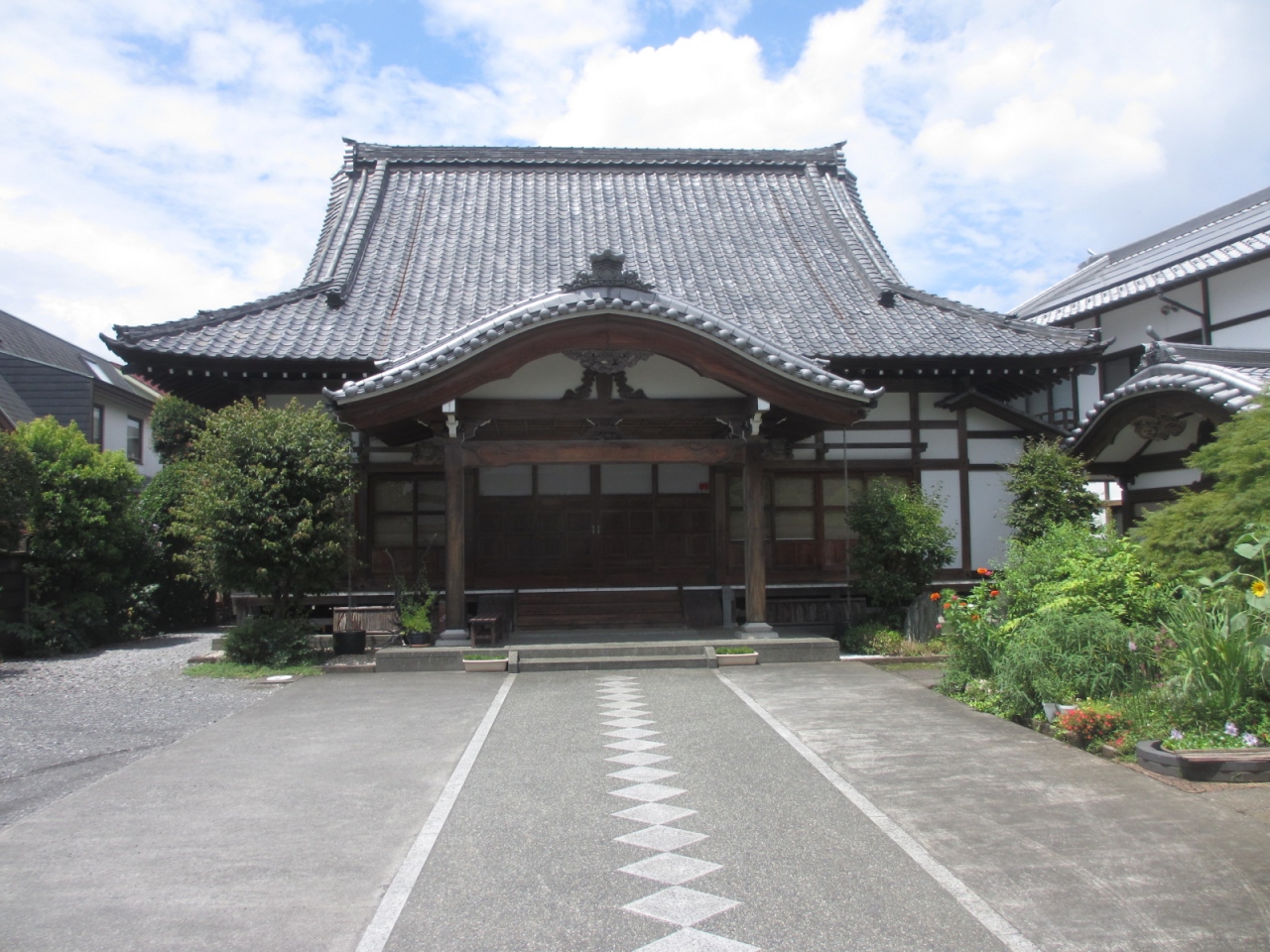 高円寺界隈を散策した際に行きました。新高円寺駅の近くクイーンズ伊勢丹の西の横の道よりもう一本西にある道を南下し、五日市街道を超えてさらに南下して少し進むと右手にある臨済宗妙心寺派の寺院です。参道の真中にダイヤの模様が続いているのがとても気になりました。