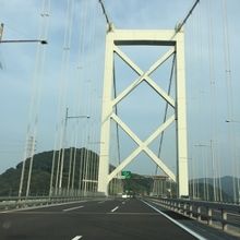 本州と九州を結ぶ大きな吊り橋です。高速道路なので、止まって見ることはできませんが、全長が長いため、運転者以外は橋の造りや下の関門海峡の景色を眺めながら通ることができ、素敵な景色だと私は思います。修復作業中なのかPAから見た時は覆いがありました。