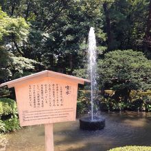 『噴水→』と園内の道に案内も書かれていて、噴水ってそんなに珍しいものではないので何故?と思いながら見にいったら、小さな噴水で特別感はない見た目。 頂いたパンフレットを読むと、園内の池を水源とし自然の水圧で吹き上がっているという珍しいものでした。しかも日本最古と。 急にスゴイ噴水に見えてしまいました。