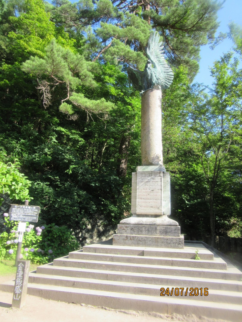 白虎隊士の武士道の精神に深く感銘したローマ市から昭和3年に寄贈された。円柱はベスビオ火山の噴火で埋没したポンペイの廃墟から発掘した古代宮殿の柱、柱の上には古代ローマの権威を表わすファシスタ党章の鉞が飾られている。白虎隊19士の墓の横にあり、自刃の地へ向かうのに気づかず通り過ぎるところであったが、ローマから寄贈されたという貴重な碑を見ることができて良かった。