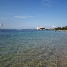 ホテルから一番近かったので、初日の夕方6時頃に行きました。みなさん帰った後だったのか、人が少なくのーんびり。小学生向けのおうちに帰りましょうのアナウンスがあったり。海に入ってお魚がいない!と思ったら砂と同じ色の小さな魚がいたり、底が生えてる葉っぱだらけでしたが、地元の方にお魚のいる場所を教えてもらえました。小さいカラフルなお魚がいました。