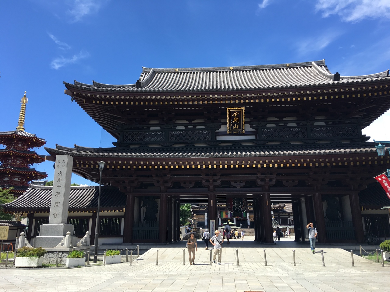 仲見世を歩いて行くととても立派な山門が見えてきます。どっしりとして威厳のある山門で、近代的な鉄筋コンクリートを用いた建築方式で建てられたことがわかりますが、実際1977年竣工とのことでした。門には仁王像が4体並んでおり、こちらも見応えがありました。