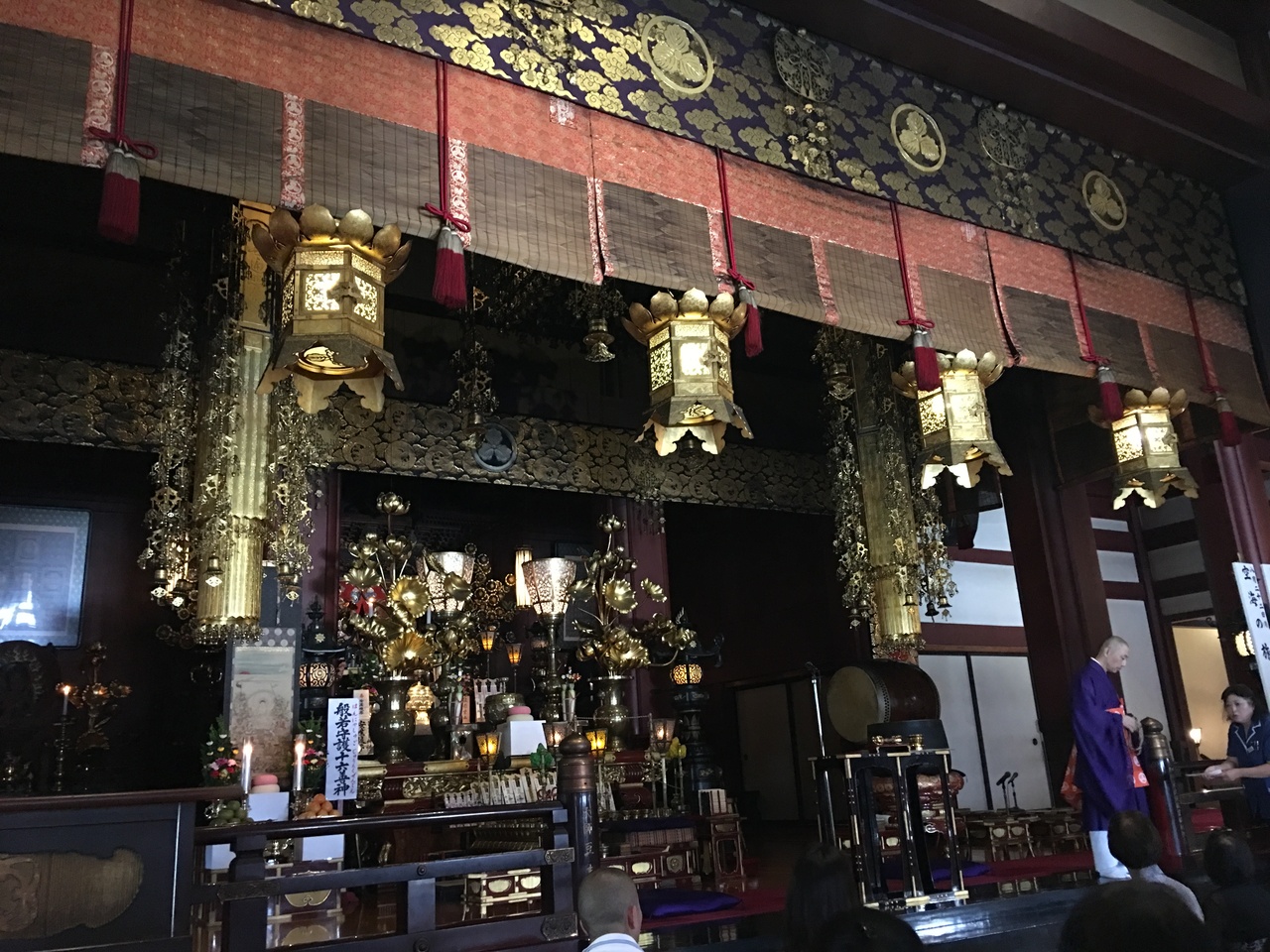 1964年に鉄筋コンクリートで建てられたれた近代的な建築物ですが、随所に昔の建築様式を取り入れているようで風格を感じさせました。本堂には靴を脱いで入れ、ちょうど訪れたのが弘法大師の月命日の21日だったのでお坊さんからの説教を聞くことができました。