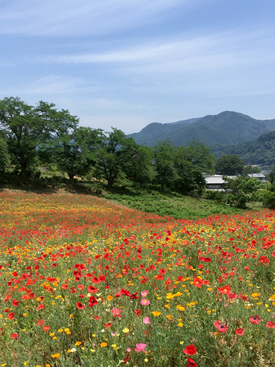 ハナビシソウとは黄色いポピーのことですが、赤一色の天空のポピーとは趣が違い、ビタミンカラーの元気色でまた違う花巡りができます。場所によっては黄色にこだわらずいろんなポピーが多種植えされていて、散策していてとても和みます。