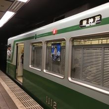 神戸市営地下鉄で、本数も多いのですが、値段はちょっと高いです。また、地下鉄西神線と直通運行しているほか、2本に1本の割合で、新神戸から先の北神急行電鉄谷上駅まで直通しているので、有馬温泉に行く時など非常に便利です。