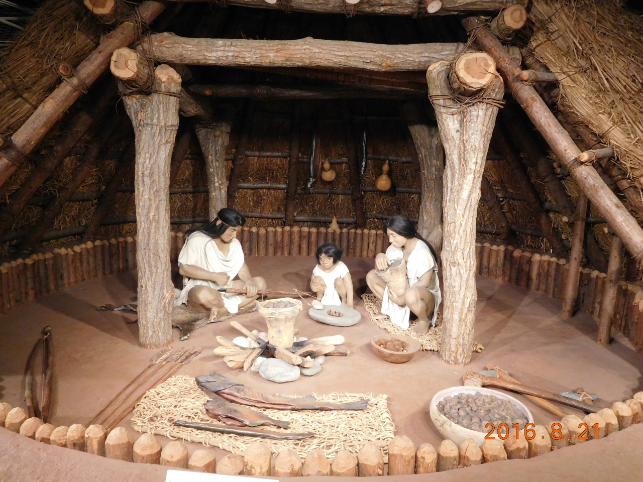 入ってすぐに縄文時代の竪穴式住居の大きな模型があります。