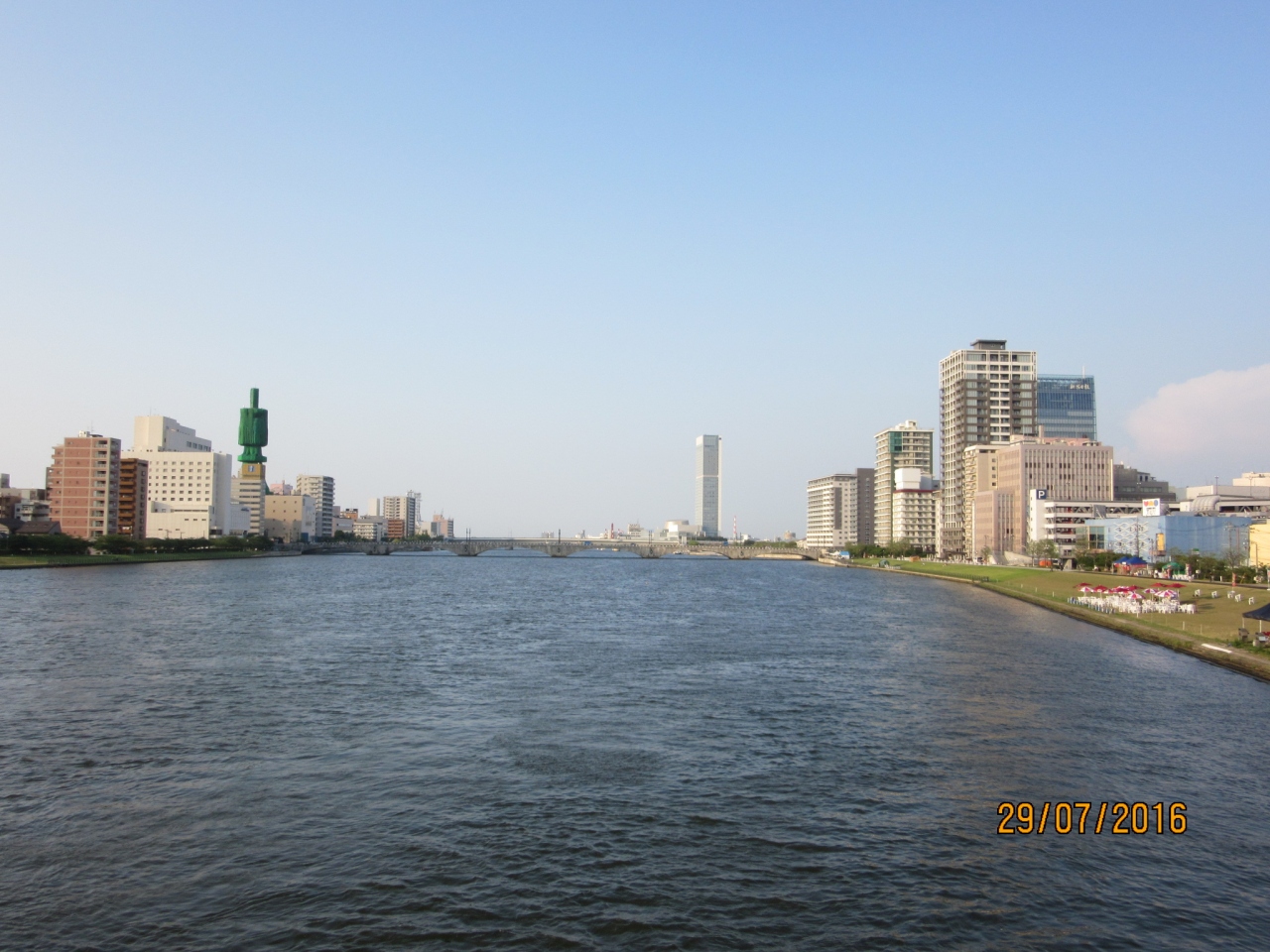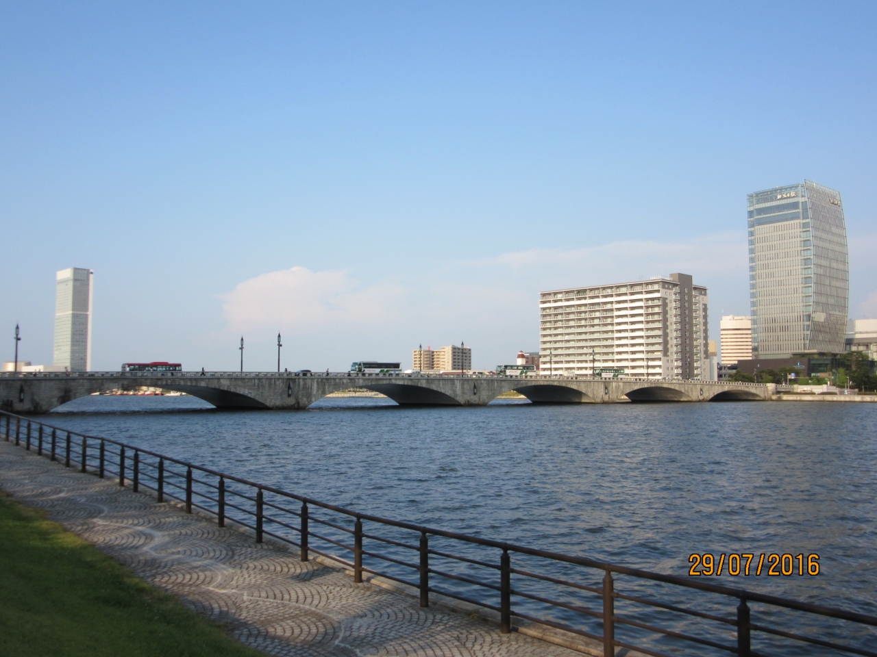 長さ309メートル、新潟駅の万代口から万代シティ⇒古町に至るメーンストリートの一部になっている。最初木造だったが、昭和4年に現在の橋を完成。信濃川の水面に美しいアーチを描く姿は新潟市のランドマーク(シンボル)の一つ。美川憲一【新潟ブルース】でもうたわれている。新潟駅から歩いて見た。最初橋げたが腰の高さぐらいしかなく心配したが、幅が3メートルくらいと広かったので、自転車とすれ違っても全く危険を感じなかった。萬代橋を超えて向かいの橋から見ると、新潟港方面の高いビルとコラボして非常に美しかった。