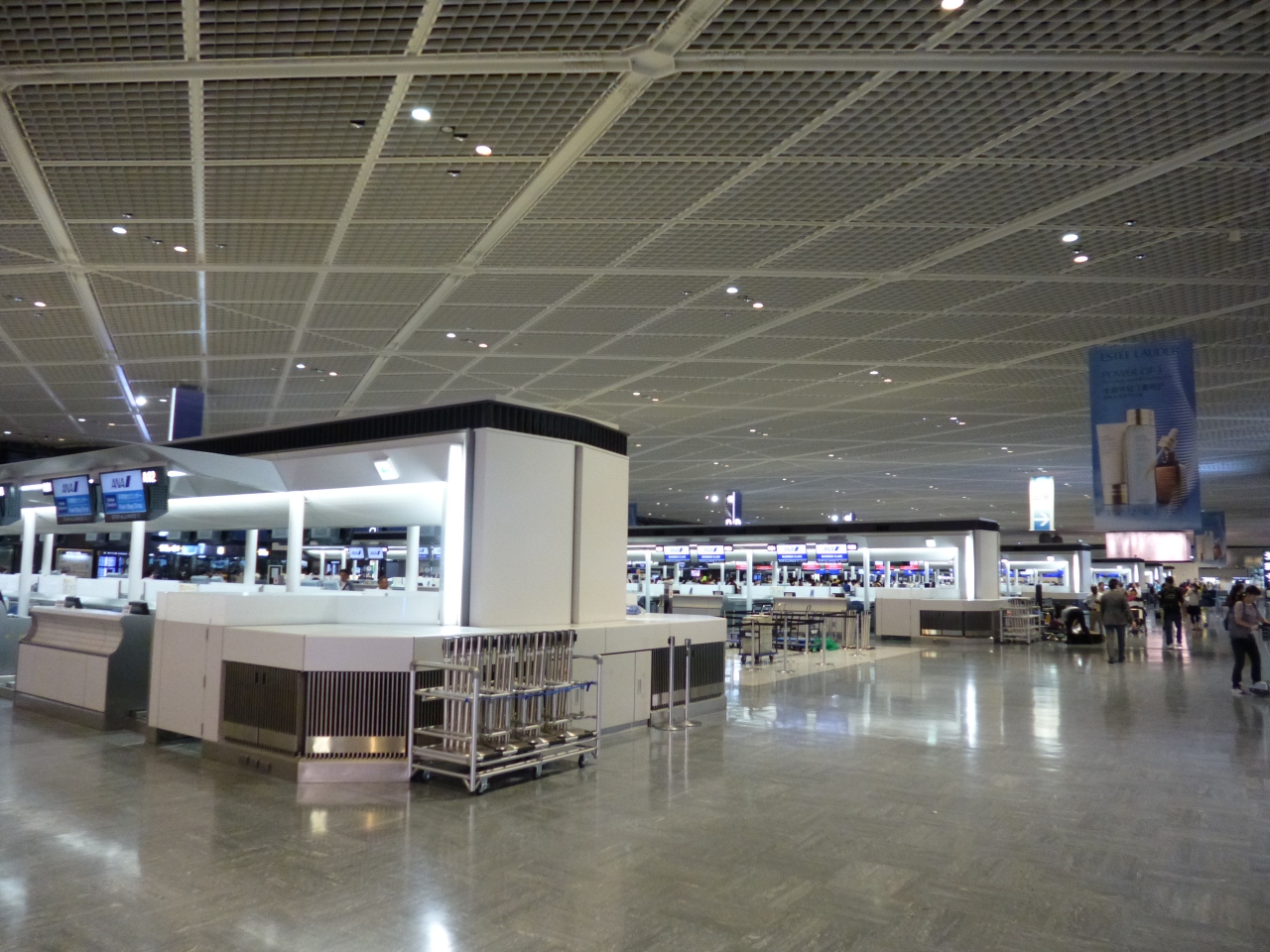 お盆の時期の成田空港なので、混雑を予想していましたが、想像したよりもはるかに空いていました。時間が遅かったことが要因と思われます。