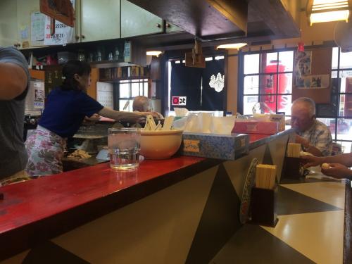 カウンターのみで決して広くはない店内。カウンターテーブルの上におにぎりやゆでたまごが置いているのも昔ながらな感じで好感が持てます。