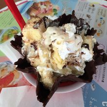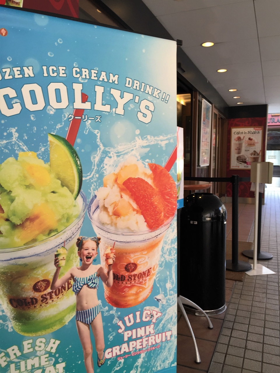 六本木ヒルズの1F道路わきにあるので、見つけにくいです。店舗前にテーブルがありますが、店舗横のガラス戸にもテーブルがあります。ここは椅子がないので立ったまま食べることになりますが、暑い夏の時期などは建物内なので涼しいです。