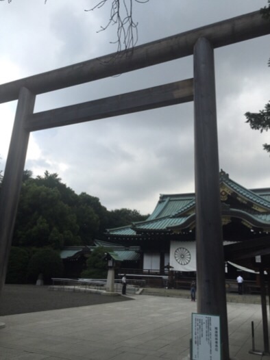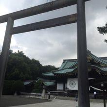 靖国神社の本殿の手前にある鳥居ですが、現在のこの中門鳥居は平成18年に建て替えられたもので、割と新しい感じがします。シンプルな鳥居の様子がかえって本殿との対比で絵になります。