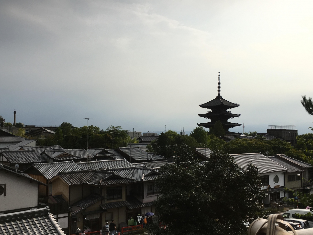写真のオススメポイントは、高台寺の入口から、この塔を見るところです。ちょうどバックに京都タワーを入れることができ、新旧のタワー対決を写真の構図に収められます。