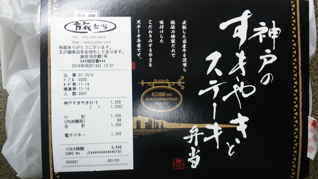 ジェイアール西日本フードサービスネットという会社が大阪駅・京都駅等JR西日本エリア内の主な駅で駅弁等を販売するお店で、2016年8月14日の日曜日に利用しました。