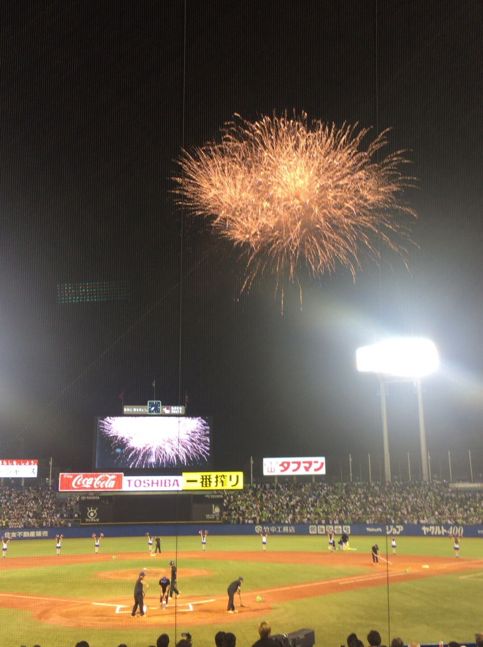 昔は外野が芝生で花火しながら見たりできた時代もあったんだよな