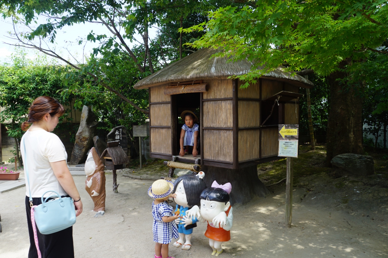 ゲゲゲの妖怪楽園は、鬼太郎ロードから少し脇道に入った場所なので、気が付きにくいかもしれません。ただ、ここもなかなか充実の施設。前庭には小さな小屋が建っていて、子供が遊んでいたり、室内の遊具場ではではスタッフがちゃんといて指導もしてくれる。水木しげる記念館とはまた違った面白さがあると思いました。