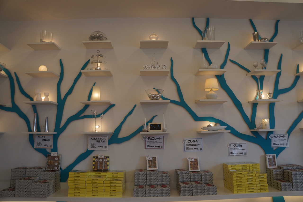妖怪饅頭は、いわゆる人形焼きなんですが、餡子だけじゃなくてチョコやクリームも入っている。そうしたバレエティの豊富さが水木しげるの世界観ともオーバーラップしているように思います。また、店内はオープンで楽しいデザイン。この売り場もショー的な要素があるでしょう。
