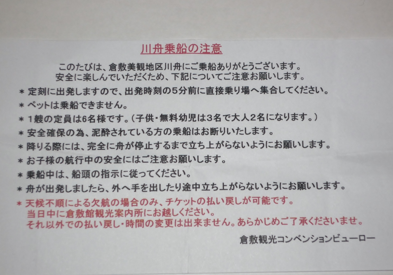 岡山倉敷旅行を計画した時に、川舟流しには絶対に乗りたかったので、