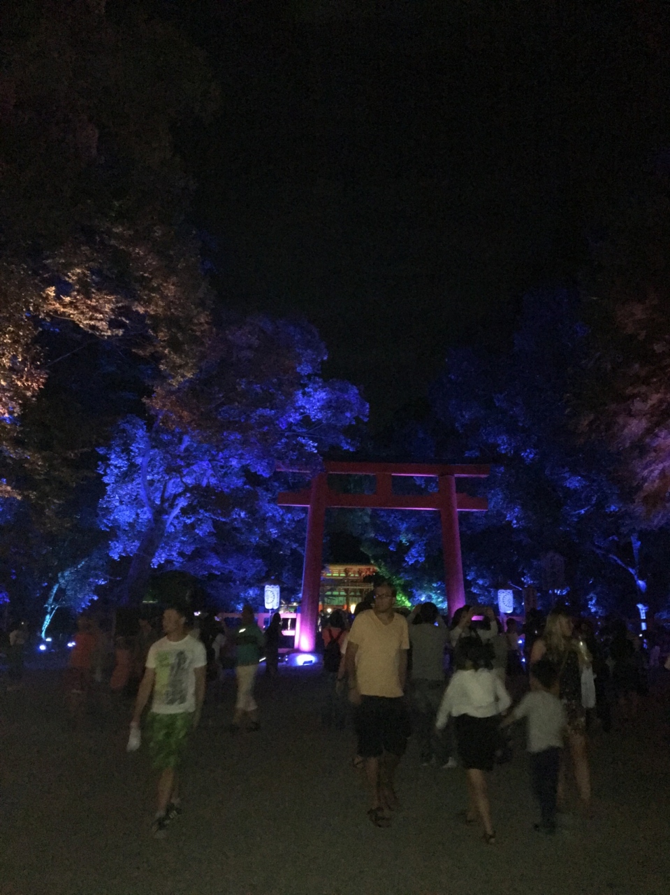 マンション建設など、最近何かと話題の多い下鴨神社ですが、今回は面白いイベントがあるというので行ってみました。映像や光、音を使ったイベントで有名なチームラボとのコラボイベントです。触れると反応する球体の展示を見たかったのですが、それは週末だけということで残念ながら見れず。ライトアップだけを見ましたが、一般的な寺社仏閣のライトアップとは異なる雰囲気で楽しかったです。