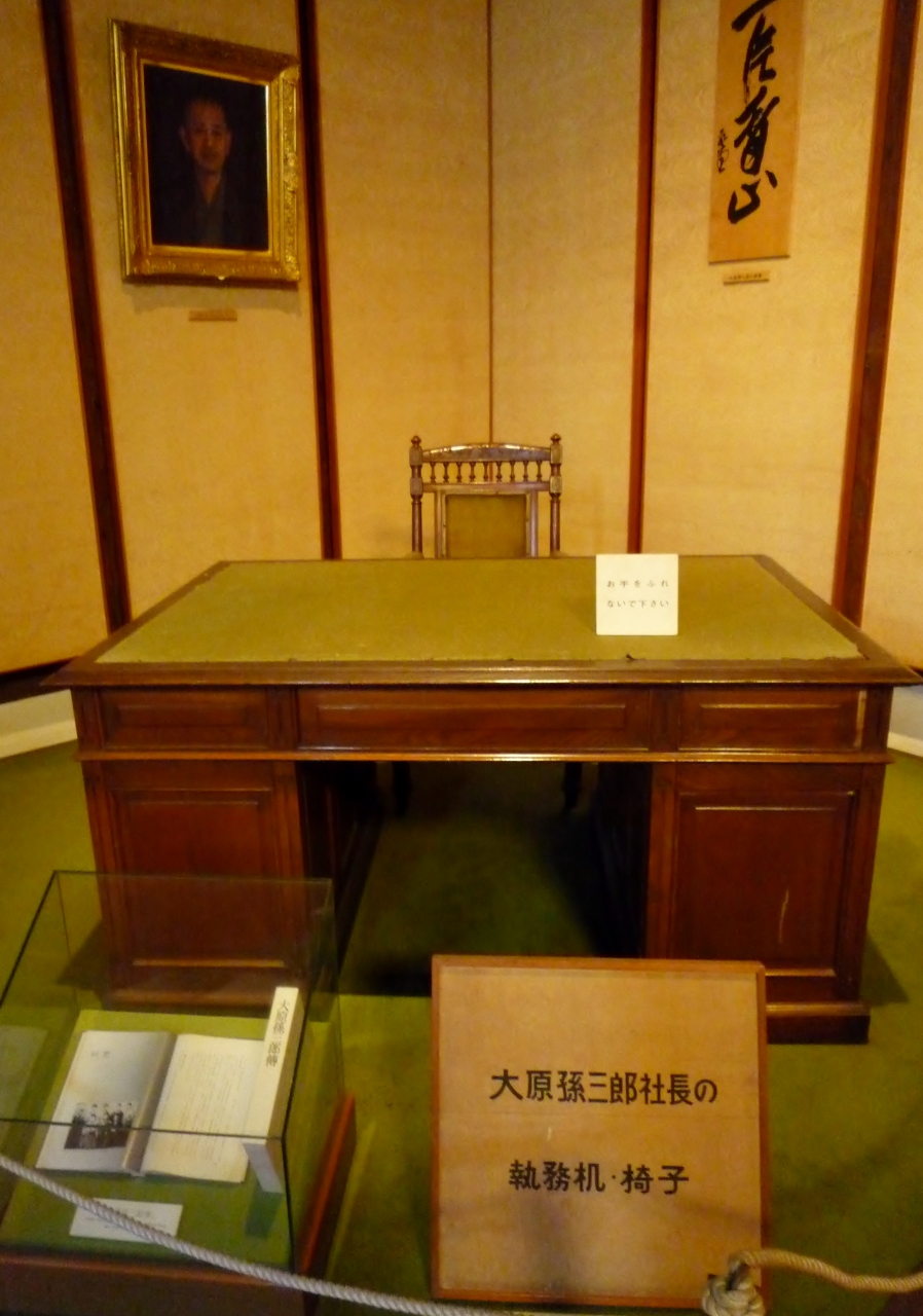 大原孫三郎の執務机や、機織、糸紡ぎ機など、