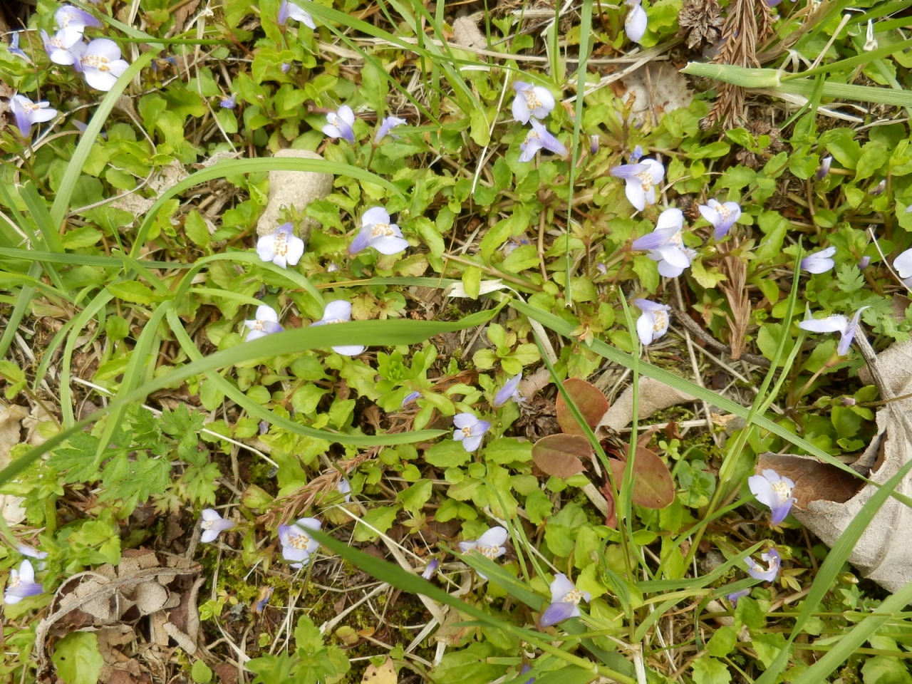 「コース概要」高校時代の仲間3人と歩く。(6;36)(0;00)出発。安養院を出て、金剛三昧院に向かい、安養院の入口の右側の坂道を登る(小辺路標識あり)(7;09)大股バス停に到着。かわらび荘に電話し、車の迎えをたのみ、今晩宿泊する「かわらび荘」に向かう。本日出会った花はニリンソウ、タチツボスミレ、カントウマムシグサ、チゴユリ、ヤマルリソウ、ムラサキケマン、キランソウ、シロバナタチツボスミレ、はしりどころ、ミツバツチグリ、ナガバノスミレサイシン、ジシバリ、ムラサキサギゴケ、ヤマツツジ、ミツバツツジ、キケマン等である。標高差は450Mほどあったが歩行距離が16.8Kmと長く心配したが、コースタイムを25分ほどオーバーして無事完歩。