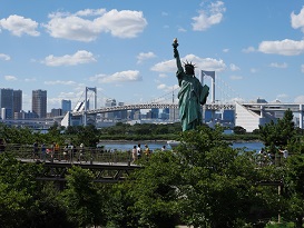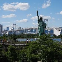 今やお台場のシンボル的存在になった「自由の女神像」は東京観光スポットになっています。像の高さは台座を含めて17.4mとニューヨークの女神像の約5分の一程度の大きさですが東京とは思えない光景がそこには有ります。