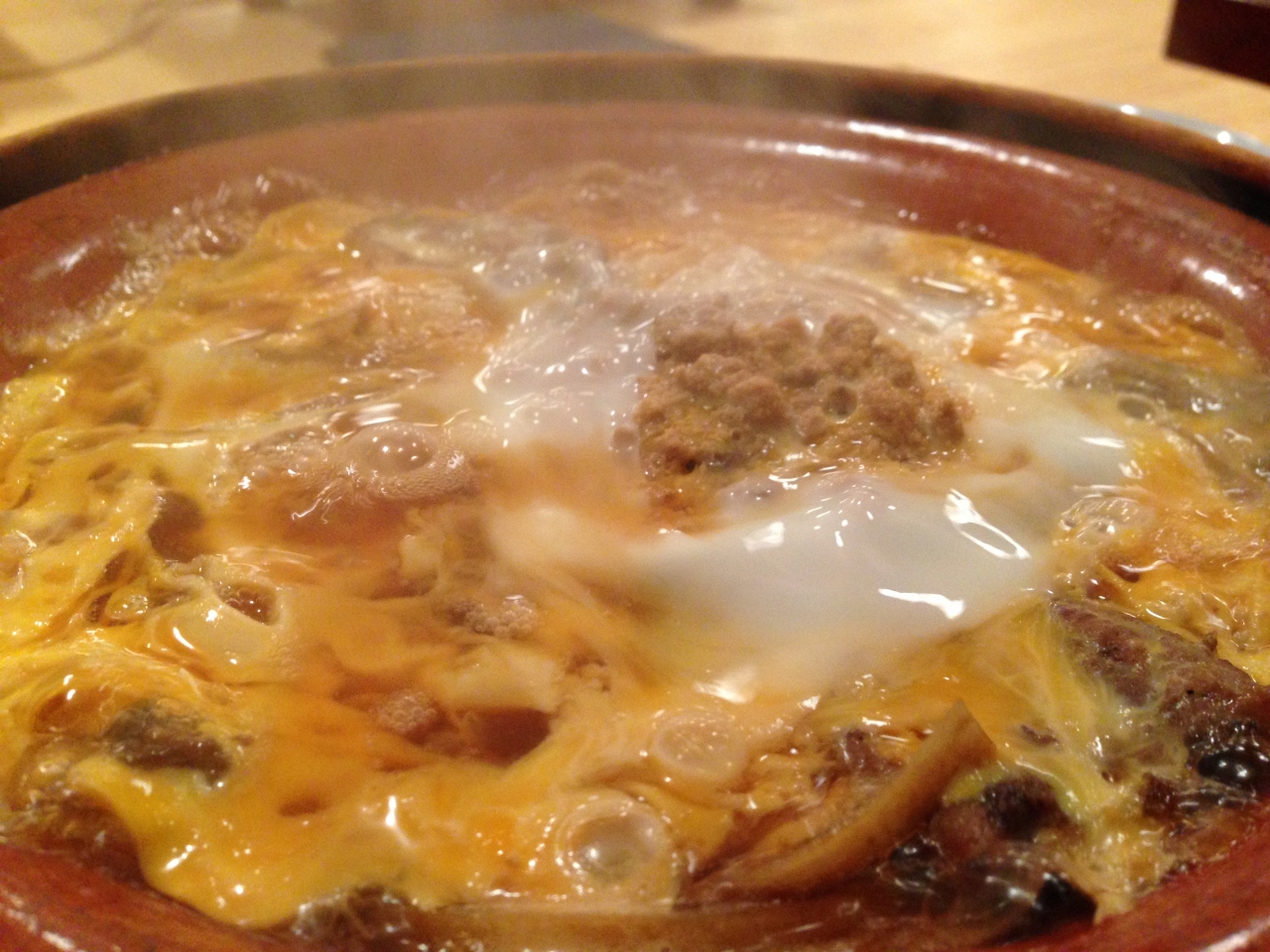 引き続いて(どぜうの)「ほねぬき鍋」。こちらは「どぜう鍋」に比べると(骨が抜けるだけあって)どぜう自身が大きめ。このため、肉のプリプリした食感を楽しむ感じになる。これはこれでまた、旨い。鍋は、豆腐、卵、ごぼうをトッピングすることも可能。