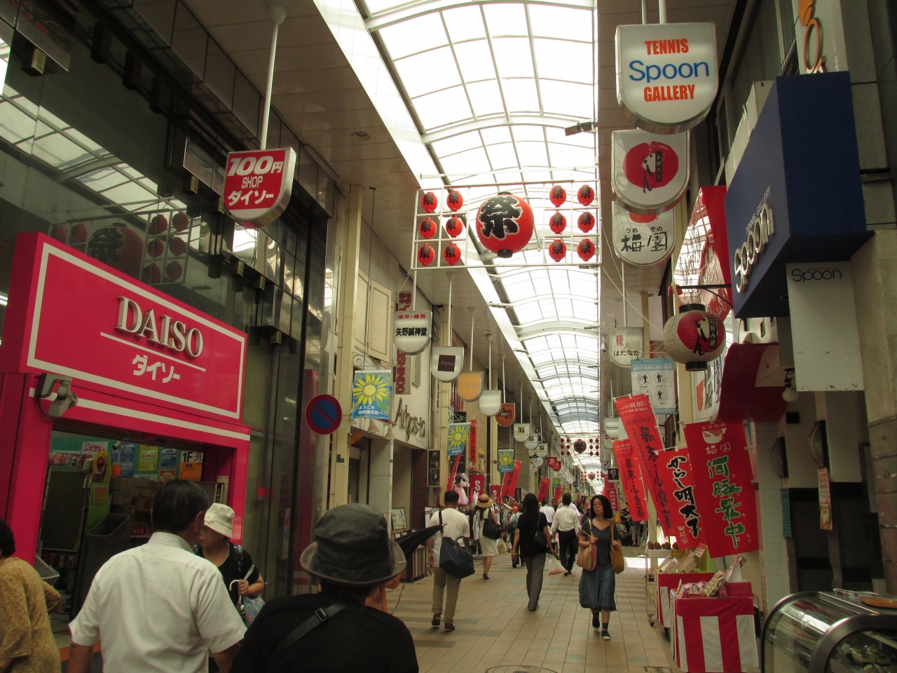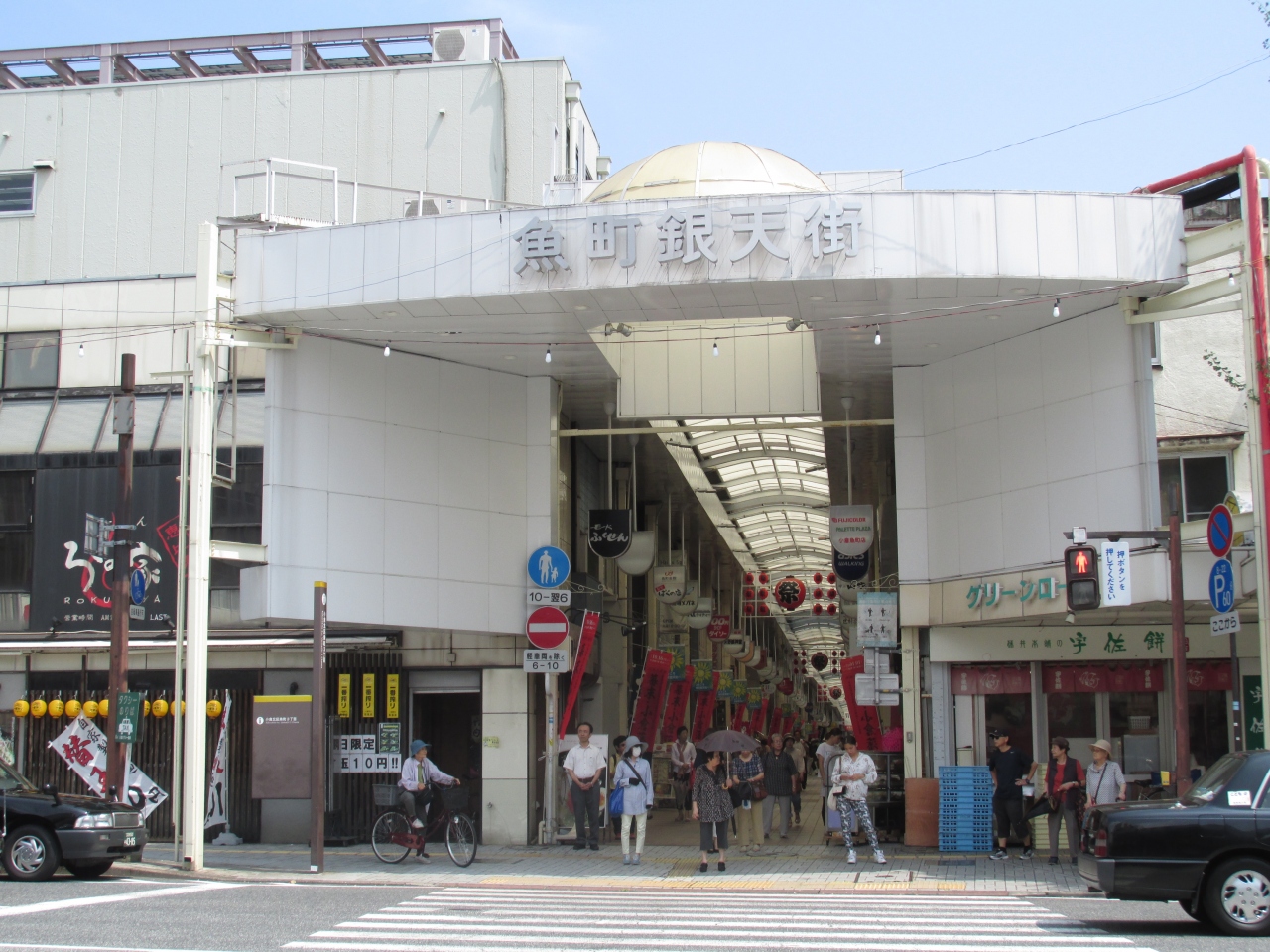 色々なお店がいっぱい並んでいるアーケード街です。訪れた日が真夏の暑い日だったので、歩いている間中、日陰がうれしかったです。先は旦過市場に続いています。脇道がいっぱいありそれぞれ通りに名前がついていました。ちょっと迷ってしまいました。