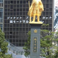 東海道線の岐阜駅前にあるのですが、実は電車の中からも見えます。それくらい大きい像です。電車内から見えたのが気になり直接見たのですが、その大きさに圧倒されてしまいました。また金ぴかで相当金をかけているのだなと思いました。岐阜駅前なのですぐにわかります。見て損はありません。