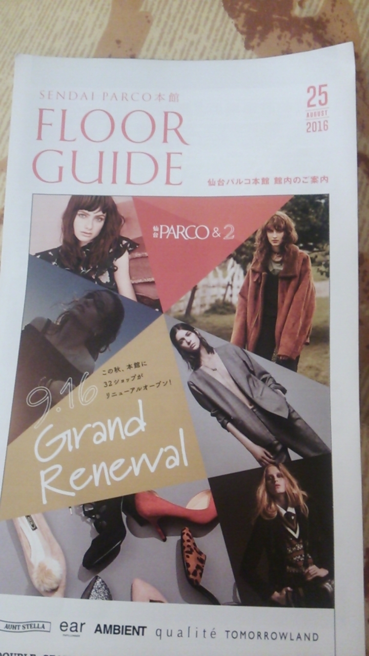 2016年7月1日の仙台パルコ2オープンに続き、2016年9月16日に仙台パルコ本館がリニューアルオープンするそうです