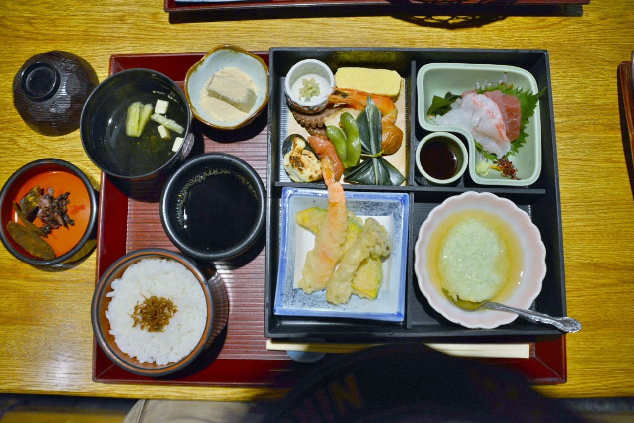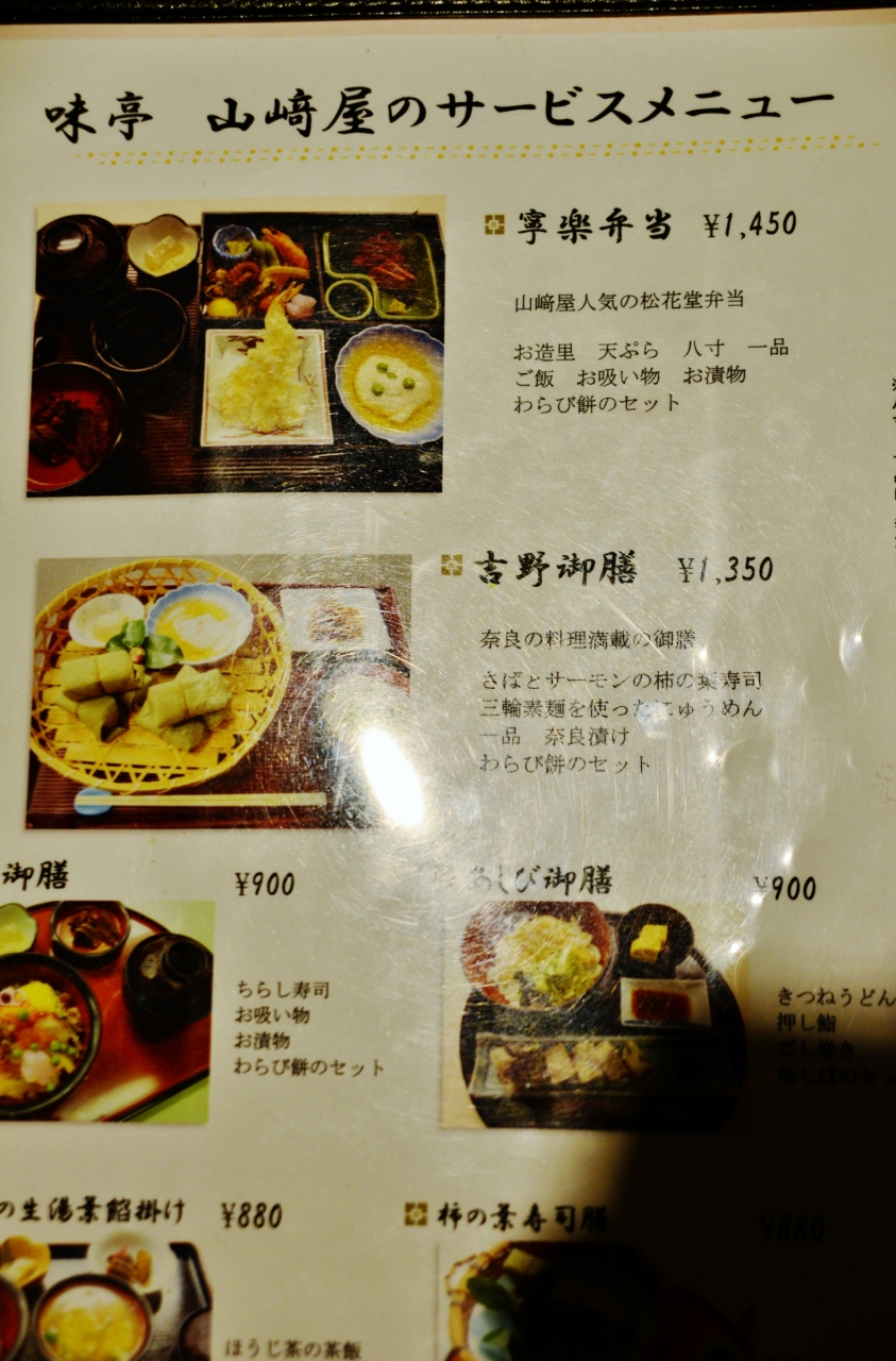 注文したのは、息子は吉野御膳1350円、私は松華堂弁当1450円。いずれも美味しかった。但し、支払いは現金のみ。