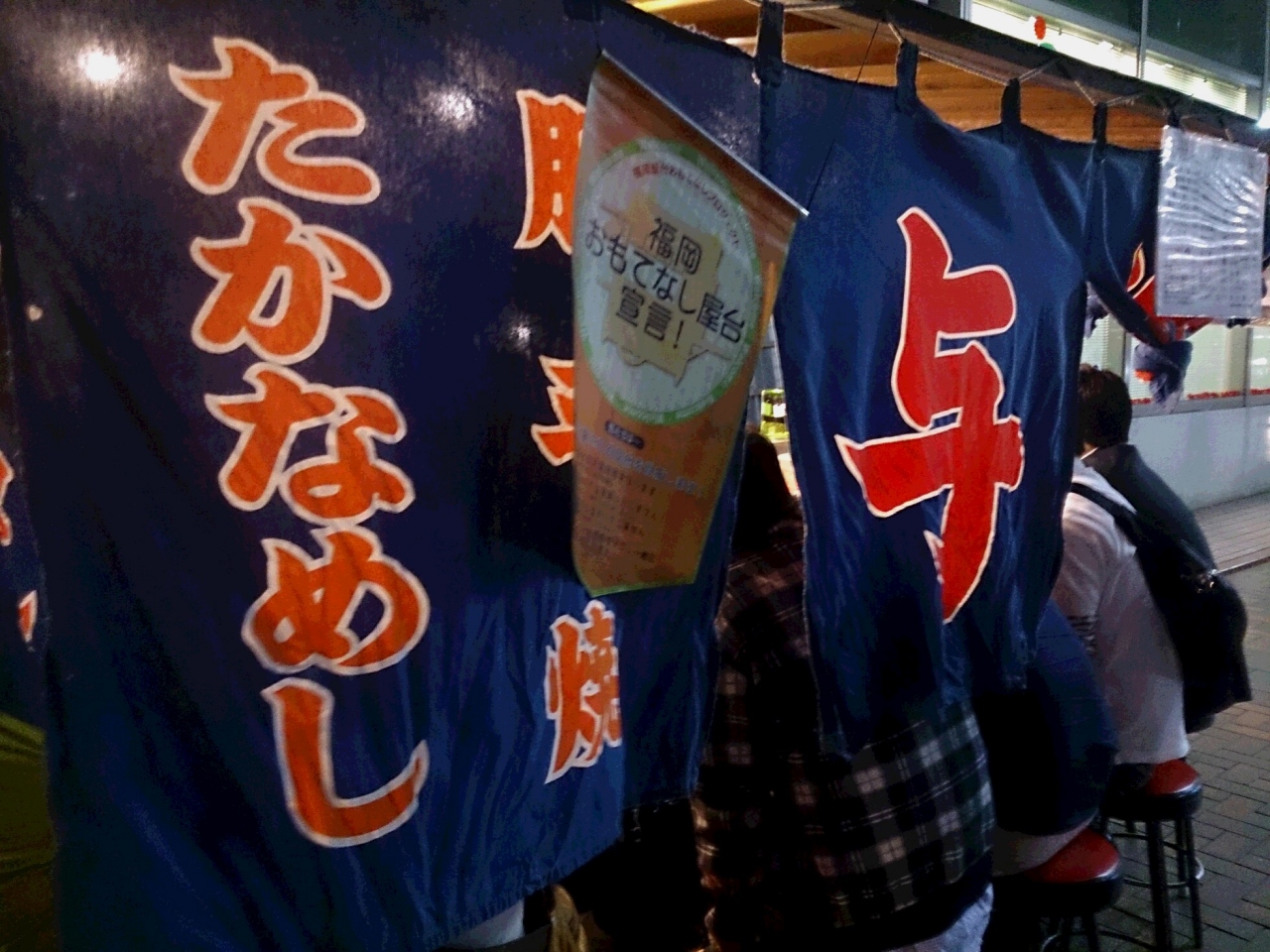 昭和通りに並ぶ屋台の一つです。この辺の屋台の中では、有名な屋台ですね。ラーメン魚に酒が飲めると聞いて行ってみました。短い旅行でたくさんの屋台に行きたいため、屋台のはしごをしましたが、甘辛い豚平焼きがビールに会って最高でした。相方と二人でラーメンと焼きラーメンを頼んで分け合って食べましたが、どちらもおいしく焼酎に合いました。それにしても、この辺の屋台は数が減ったような気がしました。いつまでも頑張って続けてください。