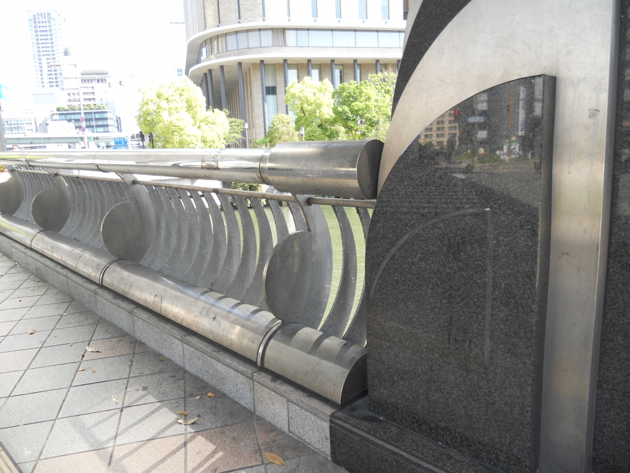 「朝日新聞ビル」の東側と「大同生命大阪本社ビル」の西側を結んでいる「土佐掘川」に架かる橋です。北側に「渡辺橋」が架かる「四つ橋筋」沿いになるので、車の交通量は早朝でも結構多かったです。