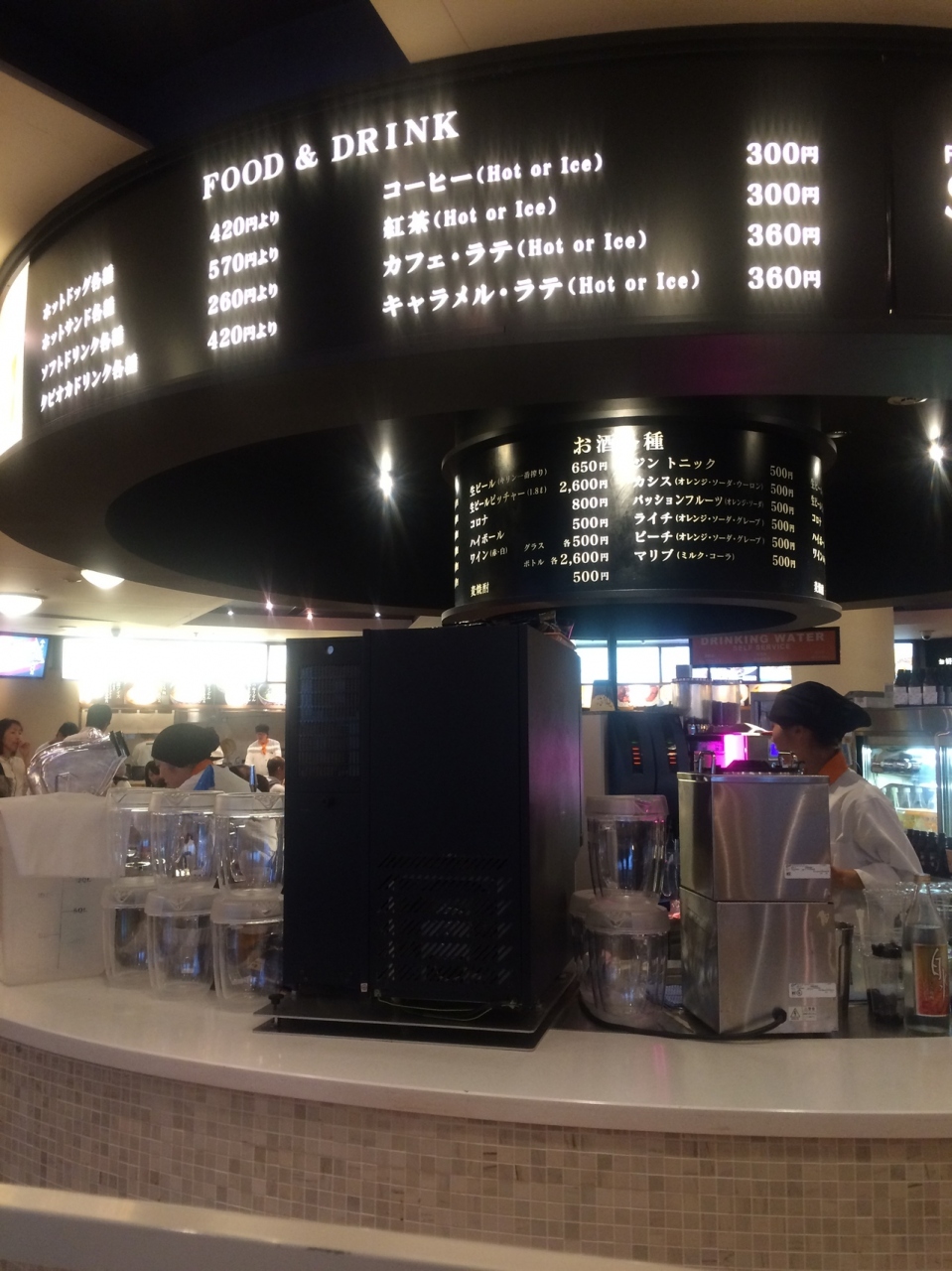 真ん中にはドリンクやホットドックなども買えるところがあります。ゴディバのショコリキサーまでありました!