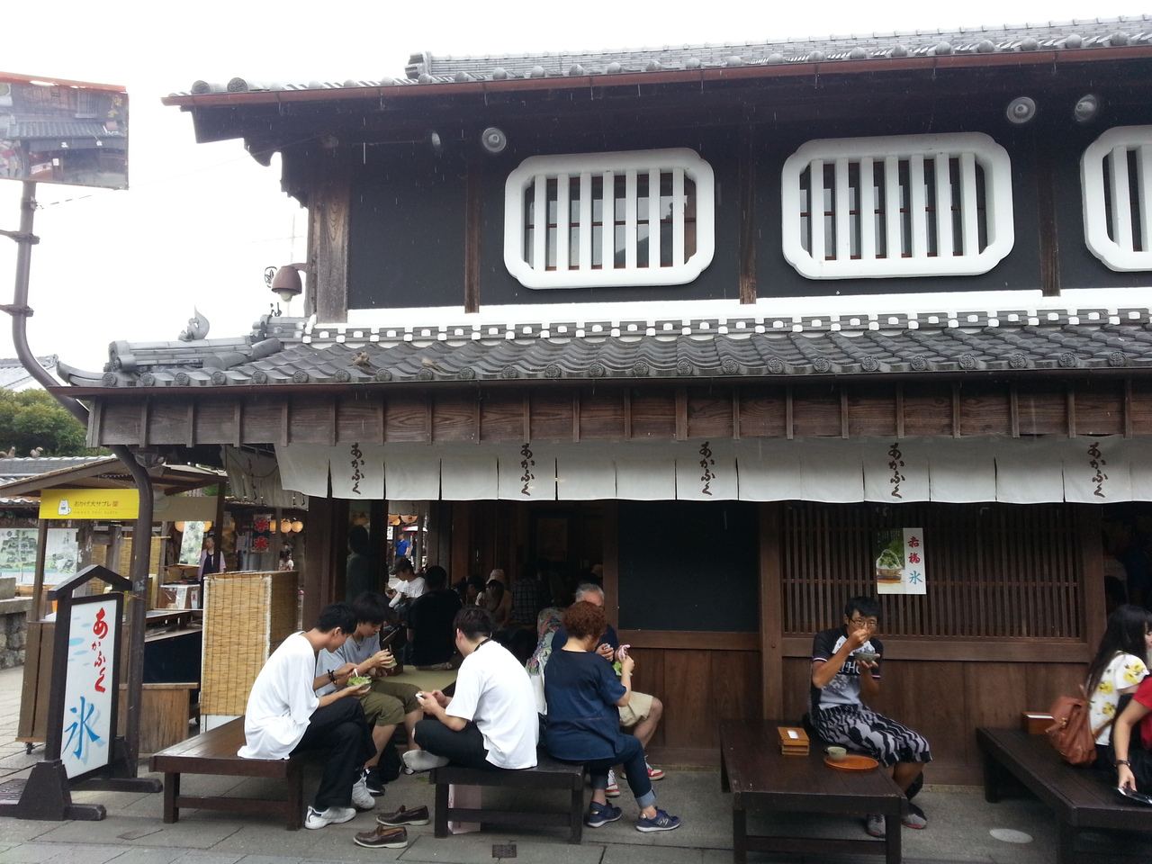朝8時頃内宮参拝に行った後、おはらい町やおかげ横丁に行きました。赤福では、季節限定の赤福氷¥520を食べました。早朝からやっているこちらのお店は、まだ開いていないお店もあるなか、ほぼ満席で、朝から赤福や赤福氷を食べる人で賑わっていました。夏にここでしか食べられない赤福氷、オススメです。