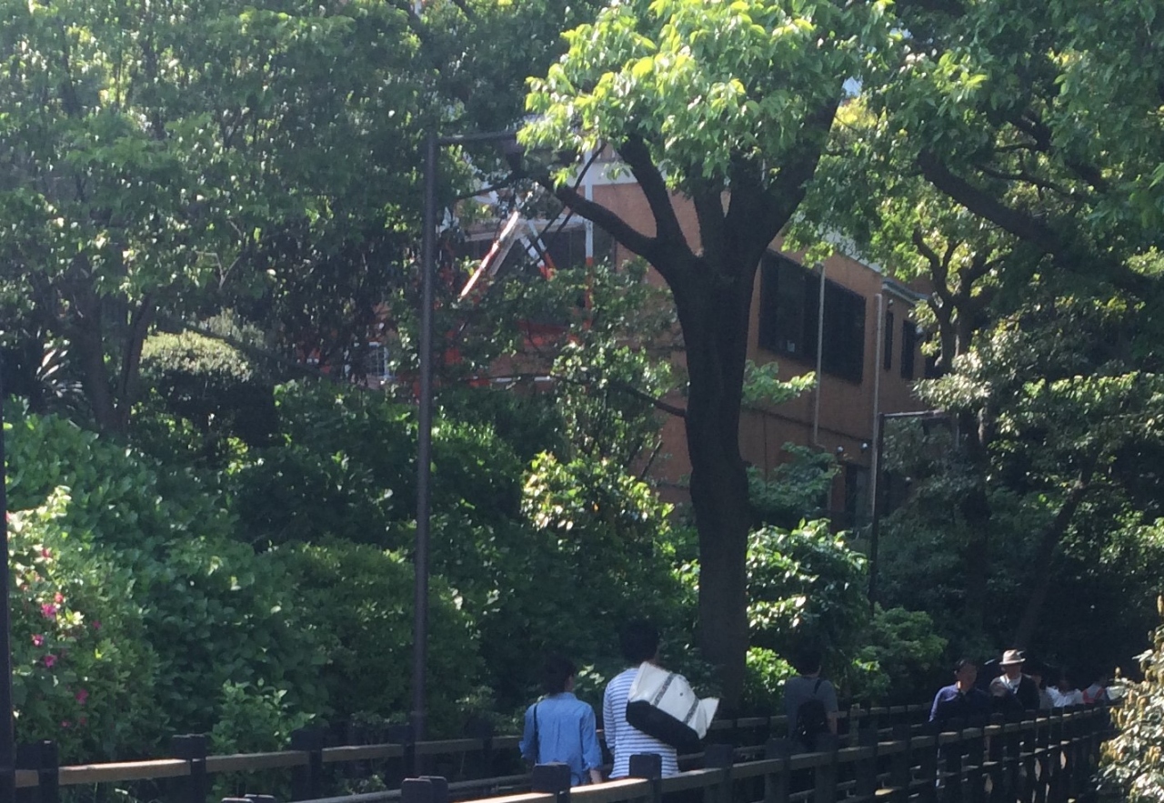 港の見える丘公園にある、KKRホテルの隣に鉄塔とともに建っています。観光スポットと思って近づいて行くと、『ここは撮影ご遠慮願います』といわれてしまいました。どうもジブリ映画で有名になってしまい、一時的に混雑したみたいです。表からの撮影はできませんでしたが、フランス山へ通じる鉄橋から見ることができました。