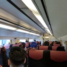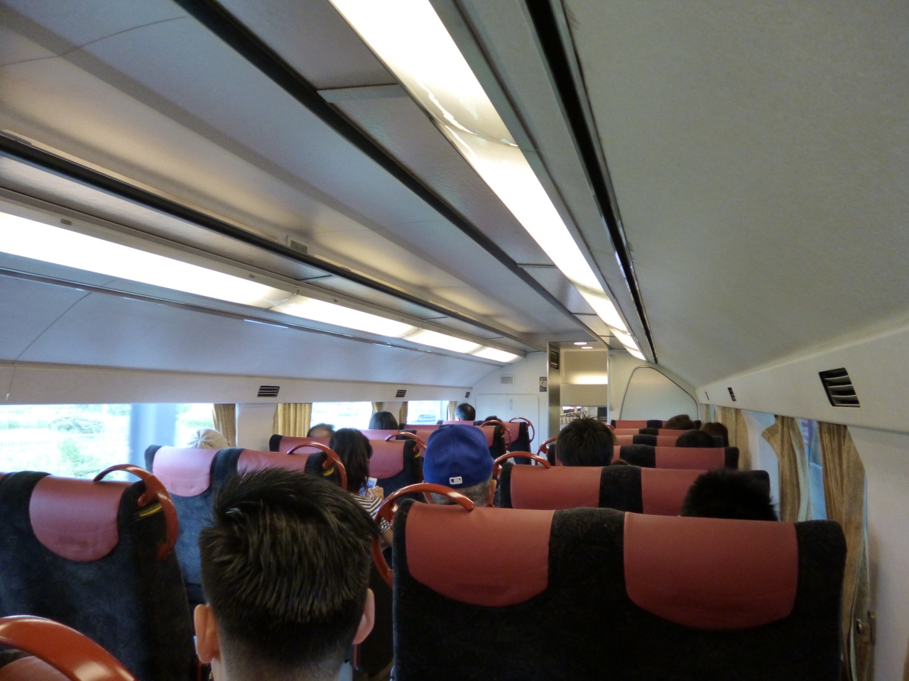 淀屋橋駅から樟葉駅まで京阪特急に乗車しました。私たちが乗車したのは二階建て車両で、2-2のクロスシート仕様です。車内外のデザイン、乗り心地とも素晴らしく、とても快適でした。特急は10分に一度運航されており、利便性の高さも特筆されます。