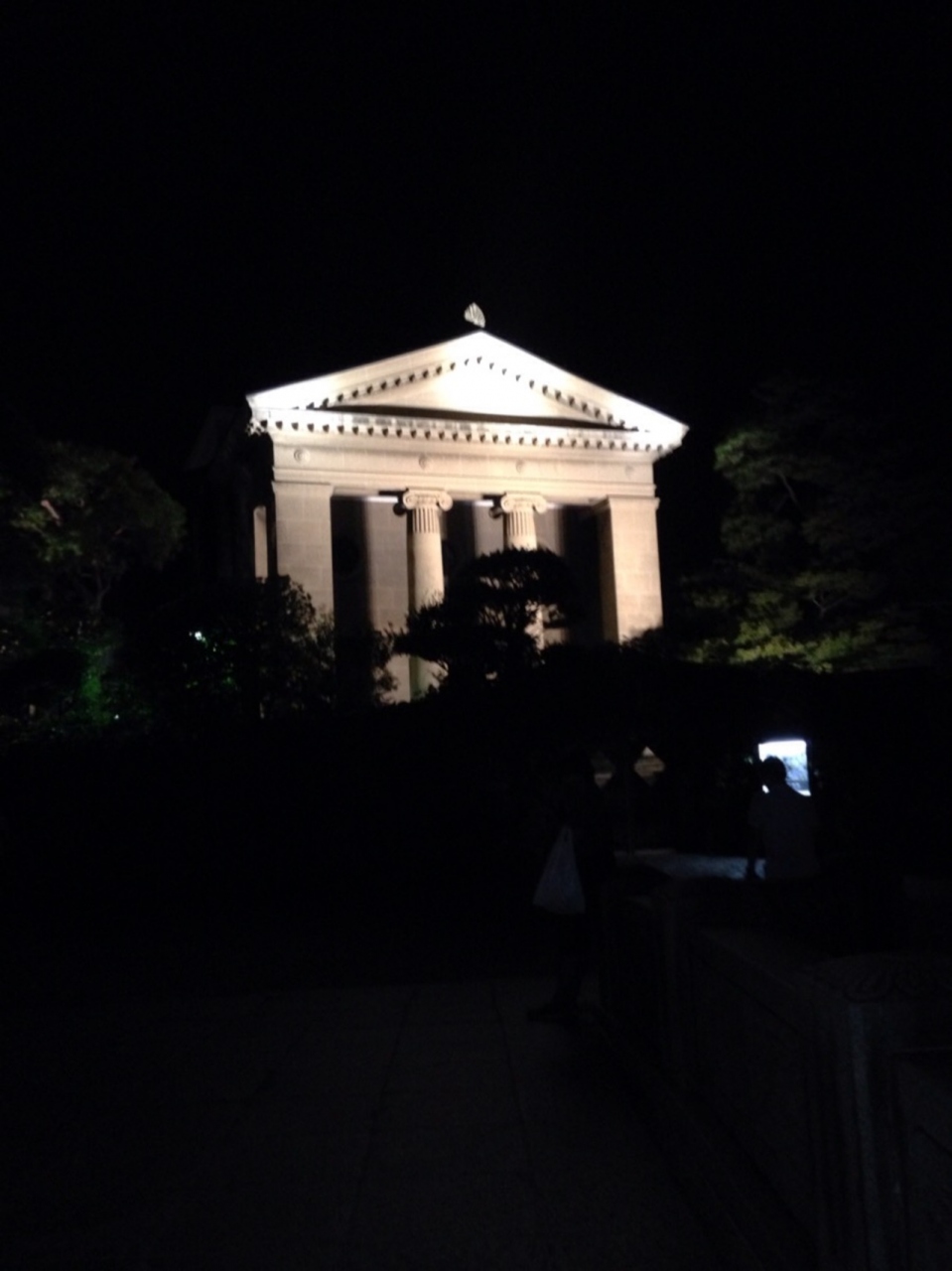ギリシャ風の建物だし美観地区と言えば白壁の印象ですがこの建物は黄土色っぽいです。