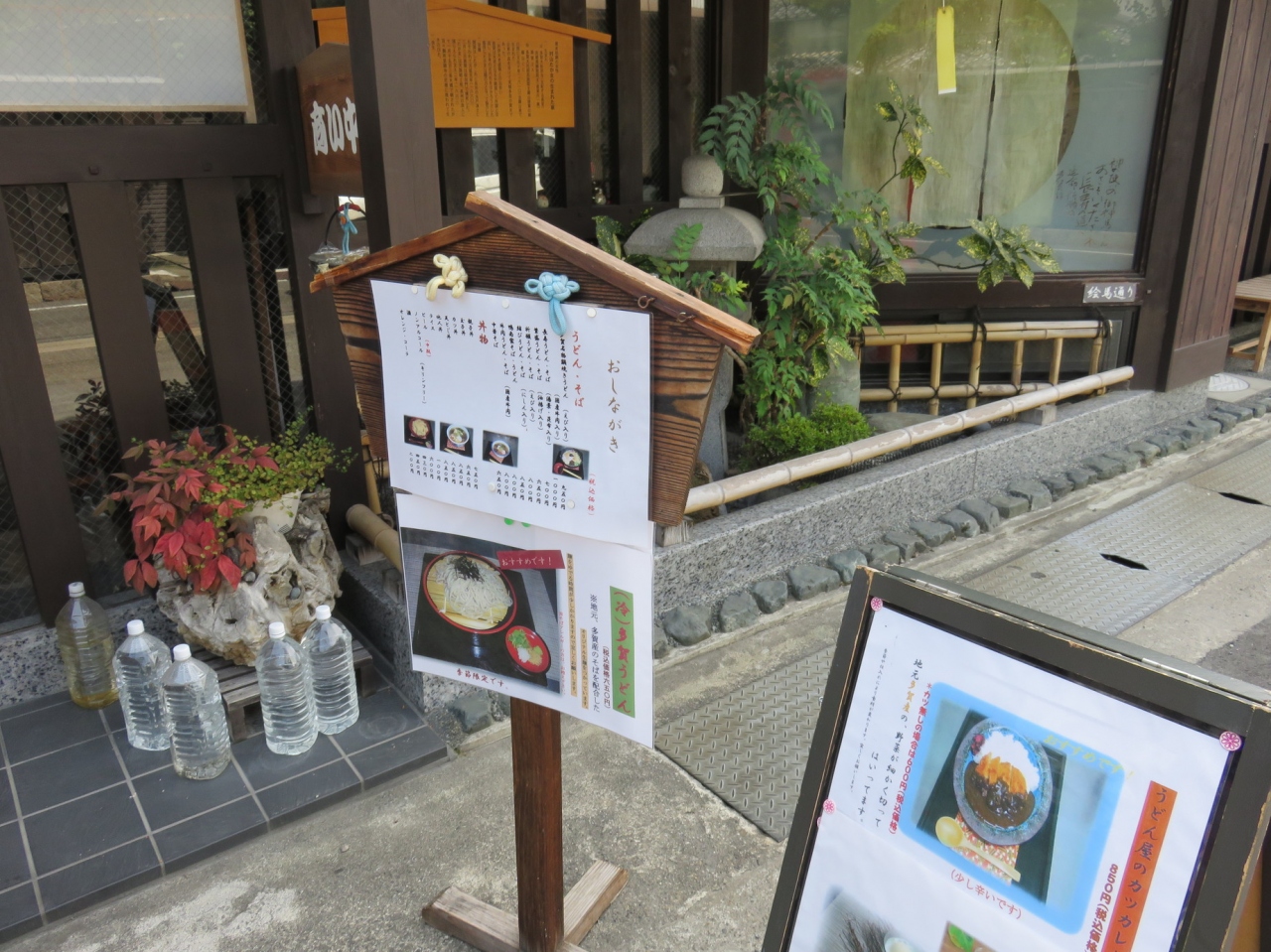 多賀大社で食堂を探したのですが、土産物屋さんの奥に有る店が多い中、蕎麦屋さんを見つけました。蕎麦と・うどんの専門のようです。お昼を回っていましたが、お客さんが途切れることなく入れ替わっていました。蕎麦を食べた後、店の前で気がつきました。多賀うどんにすればよかった・・・涙