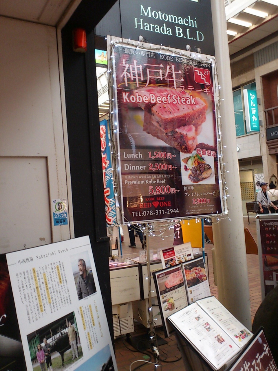 神戸観光の途中、お昼時に元町商店街をぶらぶらしていて、神戸中華街で食べようかとも思ったのですが、神戸牛ステーキ1500円からという看板を見て、このお店に入ってしまいました。お店は階段を上った2階にあります。お店の中に入ると、結構なお店でメニューを見てびっくり。確かに1500円のランチがありましたが、ピンからキリまでで、2万円のランチもありました。予定通り1500円を注文しましたが、肉の量が60gとかなり少なめ。でもお味の方は確かでした。もう少し量が多いものを注文すれば良かったと後悔です。
